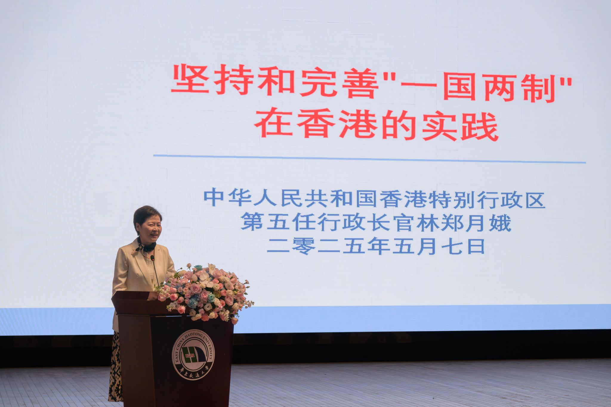 林郑月娥到访beat365官网并做客孔目湖讲坛