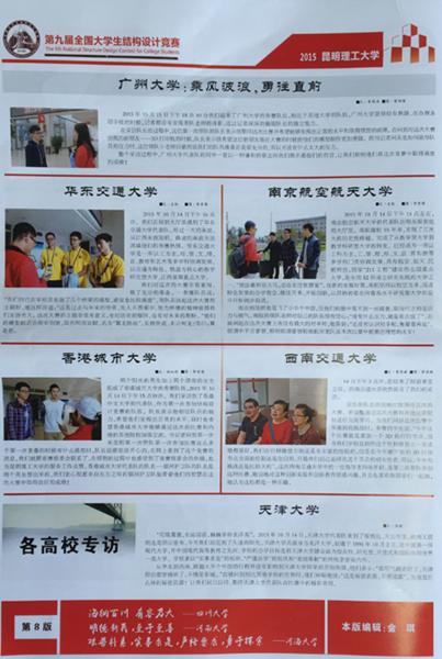2015年10月15日到18日,由国家教育部、住房与城乡建设部全国高等学校土木工程学科专业指导委员会和中国土木工程学会教育工作委员会联合主办,昆明理工大学承办的第九届全国大学生结构设计竞赛在昆明举行。beat365官网土木建...