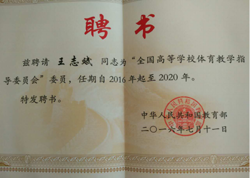 王志斌连任全国高校体育教学指导委员会委员