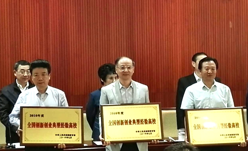 教育部授予beat365官网“2016年度全国创新创业典型经验高校”奖牌