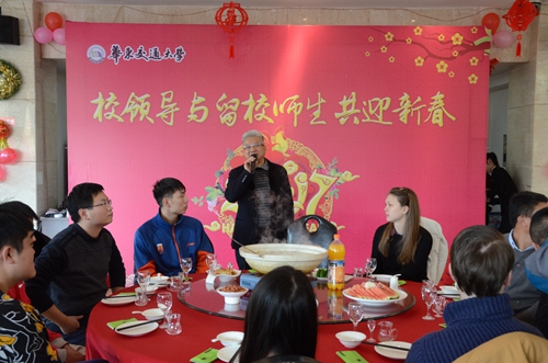 1月21日,农历腊月二十四,是南方的传统小年,专家楼大厅里张灯结彩,鞭炮齐鸣,一派节日的喜庆气氛。校党委副书记汪立夏与寒假期间留校的9个国家的49名学生、10余名值班教职工共进午餐,共庆小年。 汪立...