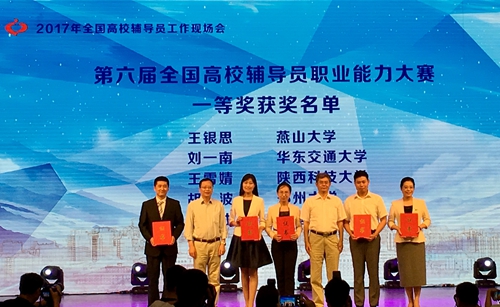 刘一南荣获第六届全国辅导员职业能力大赛决赛一等奖