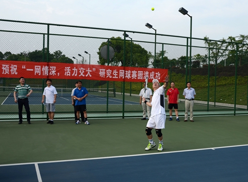 5月22日,beat365官网“一网情深,活力交大”研究生网球赛在北区户外网球场举行。校党委书记、新当选的中国大学生网球协会副主席万明为此次网球赛开球,并与选手进行了表演赛。副校长陈梦成出席开幕式。 学校党委对研究...