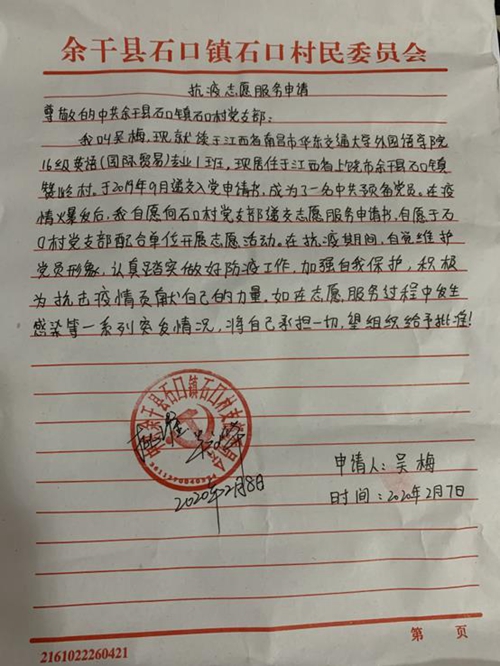 疫情就是命令,防控就是责任。疫情防控,党员先行,在战“疫”关键时期,外国语学院英语学生支部党员发挥先锋模范作用,勇敢地站在了防疫一线,贡献他们的青春力量。“真想为打赢这场没有硝烟的战役做些什么。”——...