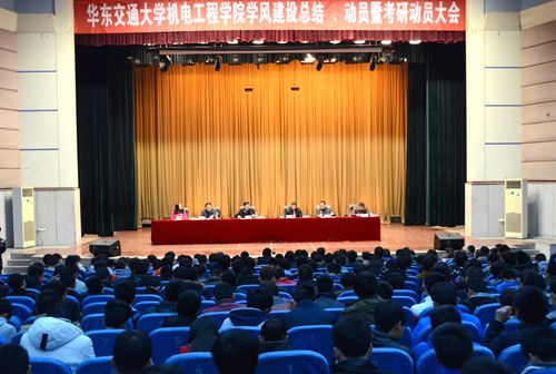 “树榜样,创新风,铸成才梦。”3月10日,机电工程学院在南区礼堂召开学风建设总结、动员暨考研动员大会。副院长刘正平、何柏林、周建民,院党委副书记何仲坚等出席会议。何仲坚主持会议。 刘正平总结了2015-20...
