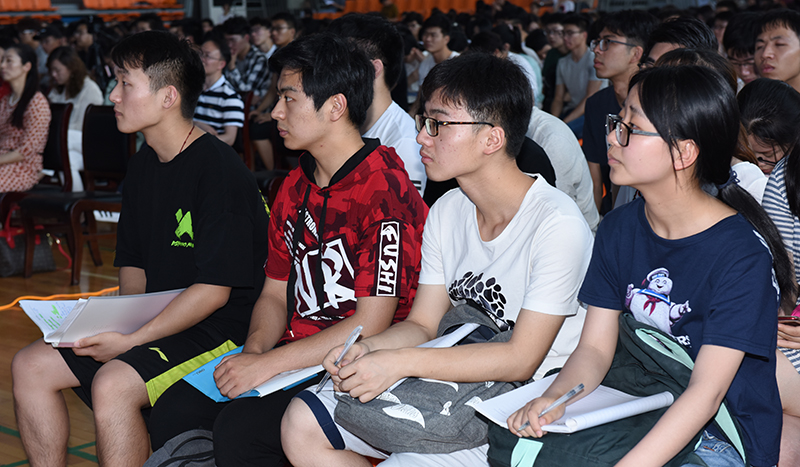 在高考前夕这样一个特殊的日子里,史国君书记从“高考”说起,祝贺同学们曾赢得N年前人生的一场重要考试,分享了“学校2018年在江苏省的招生整体调整到本一批次”的好消息。