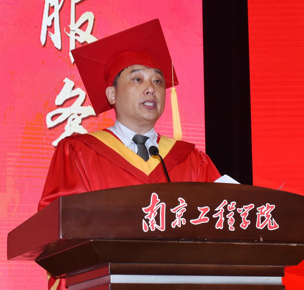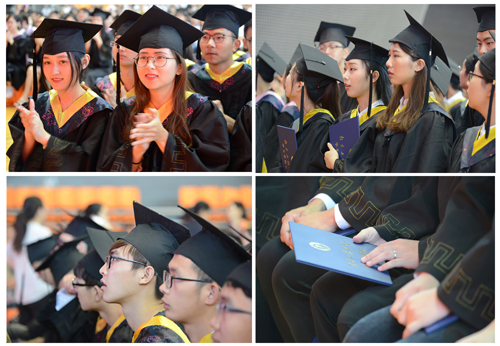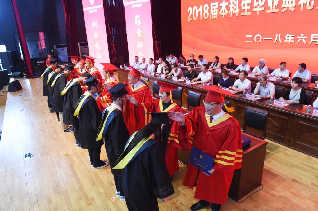 “无论黄昏把树的影子拉得多长,它总是和根连在一起”,教师代表、材料工程学院成家林老师借用泰戈尔的诗句表达了母校师生对毕业生的牵挂。他说,未来的路也许是一片坦途,也许充满坎坷,无论是顺境还是逆境,都希望同学们担当起对自己、对家庭、对社会的这份责任,砥砺前行,用奋斗来创造属于自己的幸福,书写精彩的人生。机械工程学院毕业生钱家豪代表全体毕业生向精心培育自己的母校和老师、给予关爱与温暖的父母以及朝夕相处的同窗表达了衷心的感谢。他说,毕业就像一个长长的省略号。青春散场,我们等待下一场开幕。未来,我们要时刻牢记“学以致用”的校训,将创新创业精神与工匠精神相结合,力争成为有知识、有品德、有作为的社会主义建设者和接班人,为自己留下充实、温暖、持久、无悔的青春回忆!