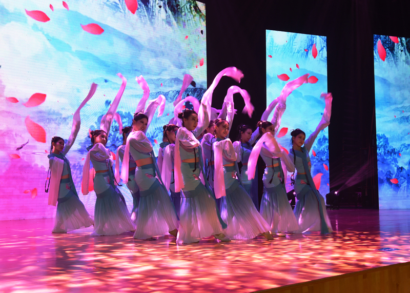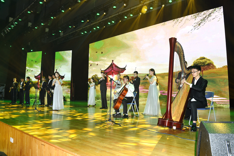 本场晚会分为“回望青春”和“展望未来”两个篇章。在欢快优美的旋律中,民乐合奏《世界上唯一的花》拉开了上篇“回望青春”的帷幕,充分展现了中国民族器乐的经典魅力。大合唱《老师我想你》用深情委婉的歌声,抒发了同学们心中对老师的不舍之情。男声独唱《我们不一样》以动感的节拍诠释了每个人的独特之处,引起观众强烈共鸣。古风舞蹈《采薇》中优雅古典的舞姿和悦耳动听的歌曲,向观众展示了女性柔美内敛的蕴味。电影配音《生命之泉》以圆润动听、音律极佳、富有张力、起伏变化的声音展示了英文配音的独特魅力,为观众带来了一场精彩的视听盛宴。器乐合奏《送别》用悠扬的乐声将离别之情演绎得淋漓尽致,寄托了不忍分别、期待再遇的送别情谊;荧光舞《光阴的故事》以独特的表演形式诉说着青春的美好与短暂,引起现场掌声连连;歌剧《红岩》将一段永不磨灭的历史和一代人尊敬的英雄搬上舞台,在回忆经典的同时激励我们不忘初心、砥砺前行。