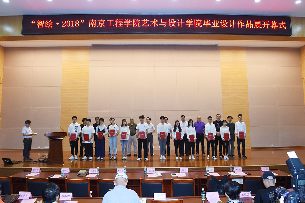 本次毕业作品中涌现出的20件优秀作品的设计者在开幕上受到表彰。获奖者之一、产品141班端木家航同学代表毕业生发言,他动情地说,四年的大学生涯,浓缩在一节节求知的课堂中和一张张设计图稿中,同学间的友谊、老师的谆谆教诲值得终生铭记,母校将是毕业生们永远的心灵港湾。教师代表刘凯老师表回顾了动画工作室探索“阶梯式人才培养模式”的努力及取得的成果,深感教师肩负的时代重任,并祝愿同学们用更多原创性的作品去引领设计潮流。