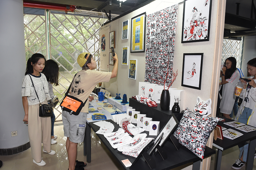 开幕式后,师生移步美术馆,现场感受毕业设计作品中洋溢出的奇思妙想和实践能力。本次展览共展出艺术与设计学院2018届5个专业297名毕业生的优秀作品,同学们脑洞大开,思维跳跃,探索深入,设计范围从海报、明信片到动画片、无人机,并首次采用了720云全景、VR等体验式展示方式。其中,马涛宇团队的三维动画短片《神仙学院》集古风、仙侠、奇幻于一体,无论从创意还是技术上都堪称成熟,达到了放映的质量;祝紫雯以《症结——书籍设计及衍生品开发》为题,聚焦青年学生的拖延症、巨婴症等,用幽默戏谑的问诊方式开出“药方”和 “药丸”;王志鹏的《灾难救援挖掘机》从动力、轮子、挖臂等多方考量,设计出适合各种地形的兼具侦测、载物等多功能的“小变形金刚”。郭雁秋的《多元化社交教学空间设计》旨在以VI虚拟现实技术、3D全息投影技术打造学生活动室和多媒体教室,胡秀秀等同学则将重点落在鹭岛、校园公交站台、北大活创业园区等,试图改善区域景观或生态,具有极强的针对性和前瞻性。