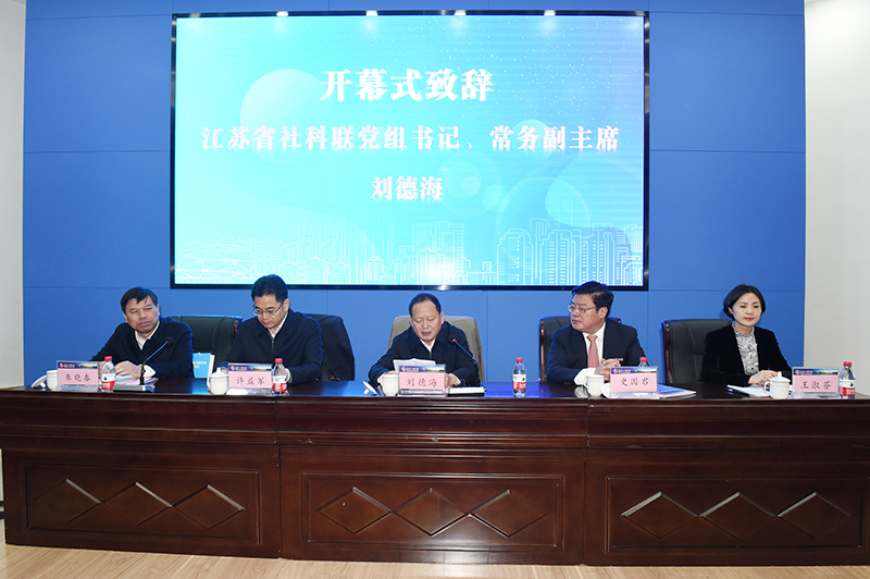 江苏省社科联党组书记、常务副主席刘德海,诸侯快讯官网党委书记史国君出席上午在图书馆报告厅举行的开幕式并讲话,开幕式由诸侯快讯官网党委常委、副院长朱晓春主持。