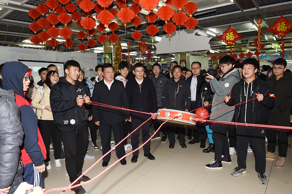 游园会活动形式多样,集趣味性、益智性和创意于一体,有休闲游戏“夹弹珠”“投壶”、新奇时尚的“VR游戏”、充满生活气息的“垃圾分类”、还有自由欢快的“正话反说”、“卡拉OK”、“欢快呼啦圈”等。在一派其乐融融的迎新年氛围中,史国君书记在每个展位前驻足,饶有兴趣地参与游戏;他还不时与大家亲切交流,为师生们送上美好的新年祝福,与大家共同分享跨年的喜悦。