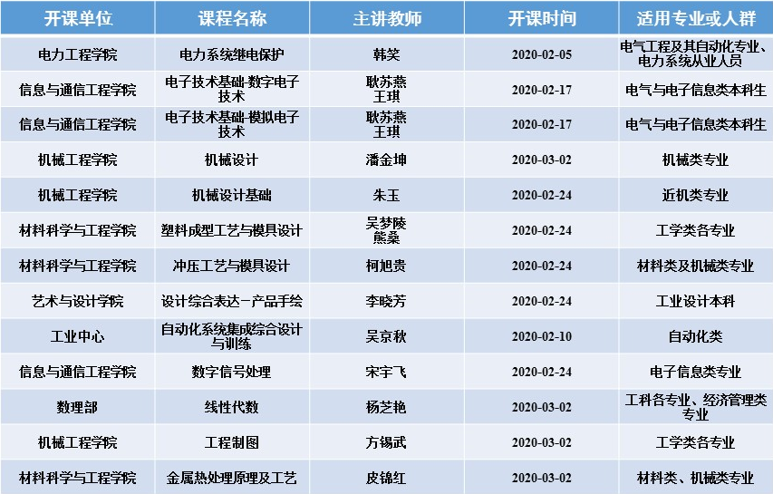 日前,诸侯快讯官网发挥百年传承、工科特长、行业特色优势,汇聚学校优质在线开放课程,通过“爱课程(中国大学MOOC)”平台,面向社会免费开放含国家及省级精品在线课程在内的25门课程(其中,省级及以上课程11门),发力在线教学,支持疫情防控期间“停课不停教、停课不停学”。具体开课情况如下: