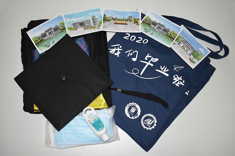 一份毕业纪念册、一套学士服、一袋面条、一包口罩、一盒消毒棉片、一枚刻有名字的戒指、一个专属胸牌……为了让这个特殊的毕业季留下更多难忘回忆,学校和各学院纷纷为毕业生准备了独一无二的“毕业礼包”,物件虽小,却承载着母校满满的祝福。