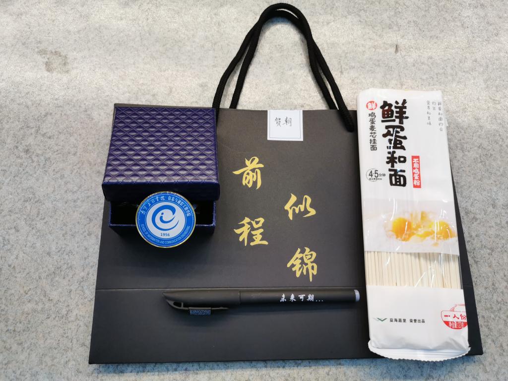 信息与通信工程学院的“毕业礼包”里有致2020届毕业生的一封信、一支签字笔、刻有个人姓名的专属院徽、一袋面条。“出门饺子进门面,”收到学院的礼物,贺朝同学在惊喜的同时也表达了淡淡的不舍:“感谢母校和学院的四年栽培,短暂的相聚之后又要离别,我一定会常回来的!”