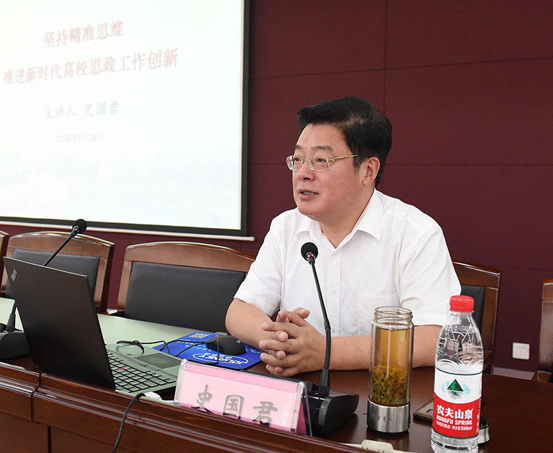 立德树人是新时代高校的根本任务,对于党和国家的前途命运、学校事业发展及学生个人成长有着重要意义。作为新时代的高校思政教育工作者,该如何将立德树人这一根本任务做实、做深、做细?8月26日上午,校党委史国君书记为参加2020年学生工作研讨会的全体学工队伍成员开出了药方——坚持精准思维,推进新时代高校思政工作创新。