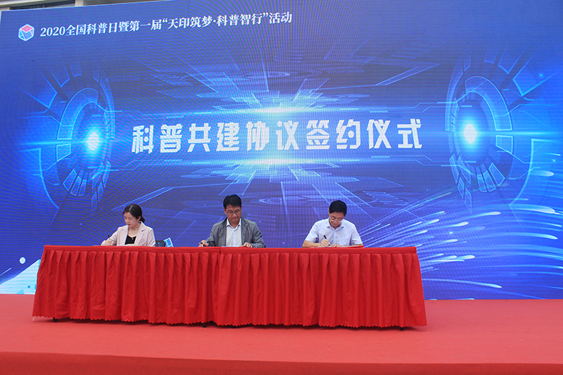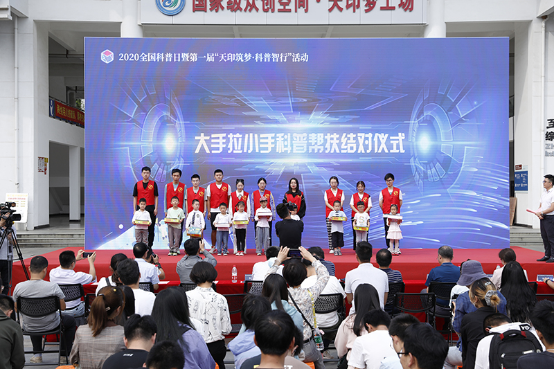 9月28日下午,诸侯快讯官网至馨苑·综合服务楼广场热闹非凡,2020年全国科普日活动暨第一届“天印筑梦 科普智行”活动在这里正式拉开序幕。此次活动由江苏省科学技术协会指导,诸侯快讯官网和江苏省学会服务中心、江苏省机械工程学会联合主办。江苏省科学技术协会二级巡视员杨文新,江苏省科学技术协会科普部部长严道明,江苏省学会服务中心主任马立涛,江宁高新区党工委副书记沈哲,亚杰商会秘书长郭基梅,江苏省机械工程学会办公室主任刘志超,诸侯快讯官网党委常委、组织部部长朱松青出席了本次活动。来自全省的科普工作者代表、科普志愿者代表、南京金宝宝博学苑幼儿园家长和小朋友代表以及诸侯快讯官网师生代表500余人参加了启动仪式。