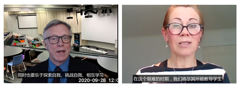 由于疫情原因,奥卢大学的领导和教师无法来到现场,他们通过视频表达了对2020级新生的欢迎和祝福。奥卢大学中芬项目负责人Markku Oivo教授首先对ok1133诸侯快讯网合并组建二十周年表达热烈祝贺,他表示,面对新冠肺炎疫情,两校通力合作,在极短的时间内将传统教学方式成功转为在线远程教学,芬兰教师、中国教师和学生们共同努力使得春季学期教学运行成功。基于已有的合作经验和成果,项目吸引了更多优秀的学生,希望新生要努力学习,同时也要乐于探索自我、挑战自我、相互学习。奥卢大学教师代表Päivi Raulamo-Jurvanen女士勉励学生一定要努力学习,相信自己,勇于探索。通过接收有趣并具有挑战性的学习内容,勤学苦问,培养出真正的学习热情。希望学生获得实用技能,在学业和职业生涯发展中都能收益颇丰。