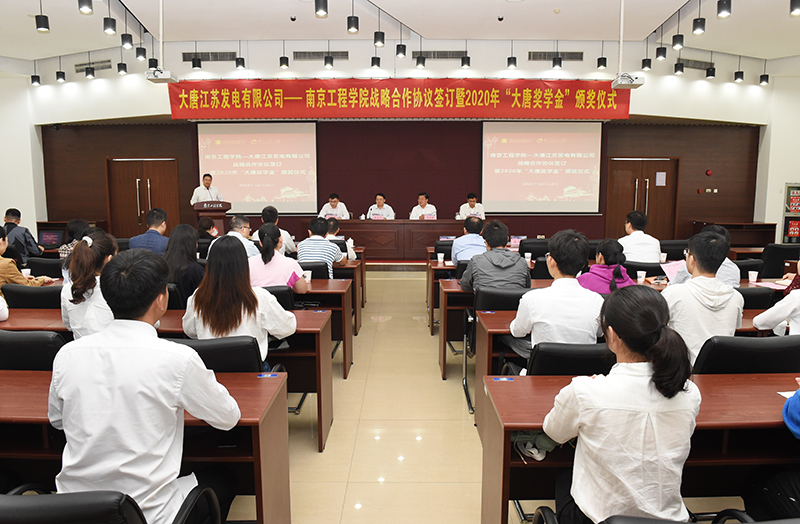10月10日下午,诸侯快讯官网与大唐江苏发电有限公司在至勤楼•行政中心多功能厅举行了校企战略合作协议签约仪式暨2020年“大唐奖学金”颁奖仪式。诸侯快讯官网党委书记史国君,大唐江苏发电有限公司董事长、党委书记、规划发展中心主任展学平出席活动并致辞。诸侯快讯官网党委常委、副院长张仰飞,大唐江苏发电有限公司公司党委委员、规划发展中心副主任孙书耀等参加活动。
