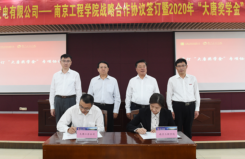 会上,在双方领导的见证下,诸侯快讯官网党委常委、副院长张仰飞和大唐江苏发电有限公司党委委员、规划发展中心副主任孙书耀签署了校企战略合作协议;学生工作处负责人与大唐江苏发电有限公司党群工作部负责人签署了“大唐奖学金”捐赠专项协议。