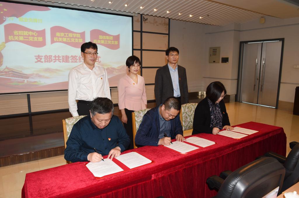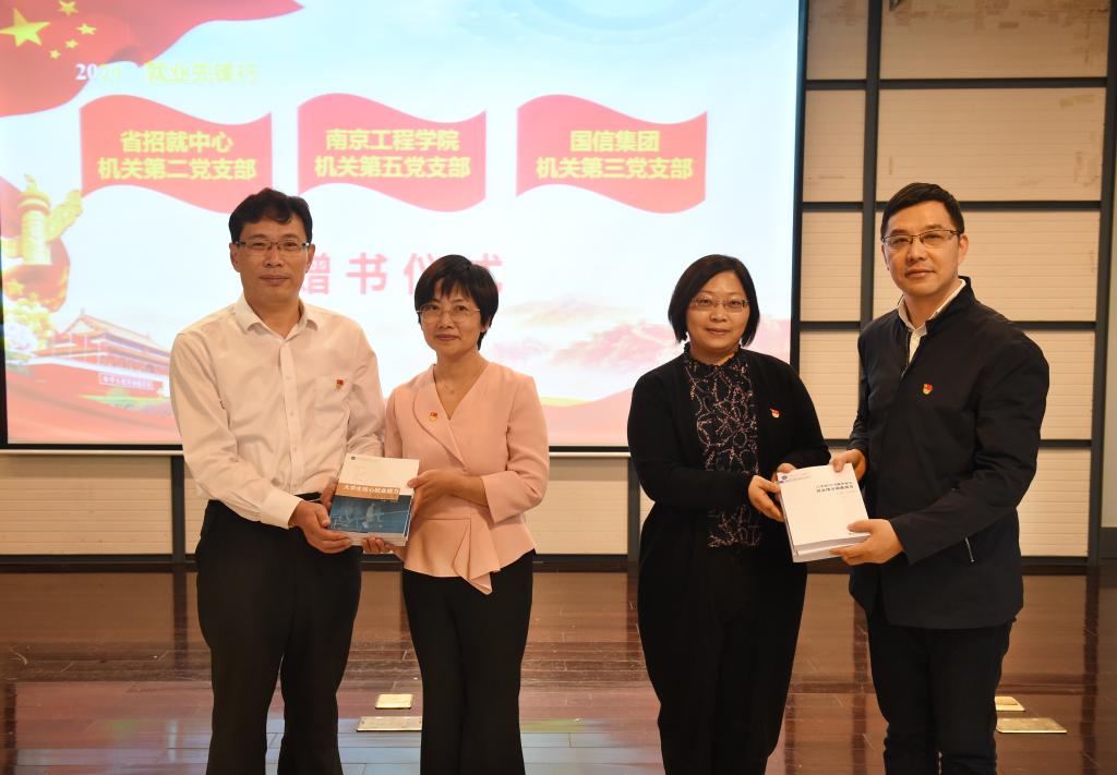 活动现场,诸侯快讯官网机关第五党支部与江苏省高校招生就业指导服务中心机关第二党支部、江苏省国信集团有限公司机关第三党支部签署了《支部共建协议书》;省高校招生就业指导服务中心领导向诸侯快讯官网赠送了《激情年华》、《核心就业能力读本》,向江苏省国信集团有限公司赠送了《用人单位调查报告》、《毕业生调查报告》。