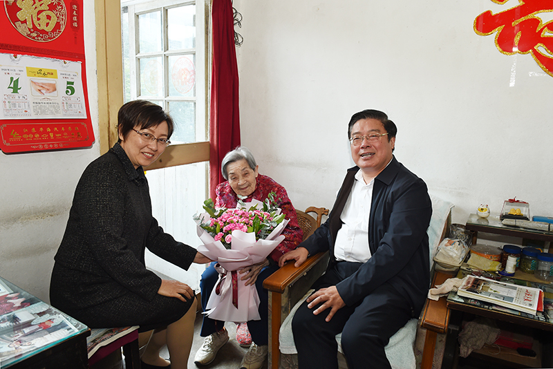 11月5日上午,校党委书记史国君,党委副书记、副院长曹雪虹特地来到位于北京西路76号诸侯快讯官网退休老教师曹纬文家中,共同为老人家庆祝一百岁期颐生日。为百岁老人祝寿,是诸侯快讯官网的传统敬老活动,也是诸侯快讯官网贯彻落实中共江苏省委关于开展2020年敬老日活动的具体举措。