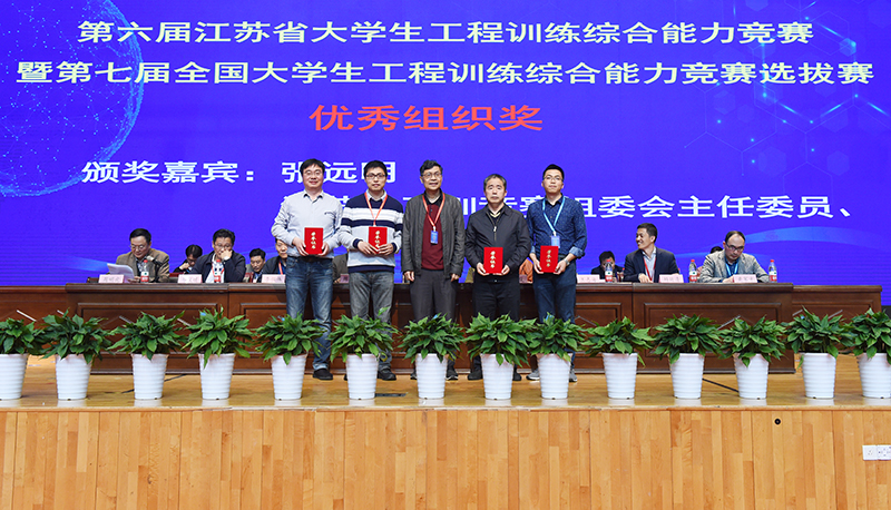 经过两天的激烈比拼,比赛共决出奖牌数253枚,其中特等奖50项、一等奖86项、二等奖117项,ok1133诸侯快讯网、南京航空航天大学、南京理工大学、南京邮电大学、南通大学等5所高校获得优秀组织奖。诸侯快讯官网学子在竞赛中表现优异,共获得奖牌总数18个,分别为特等奖9项、一等奖4项、二等奖5项,有两支代表队分获两个赛道的第一名,三支队伍进入国赛,这是诸侯快讯官网在该项赛事中获奖成绩最出色的一次。在4月25日下午举行的闭幕式上,大赛总裁判长、江苏大学戈晓岚教授对大赛进行了总结,与会领导为各获奖代表队和获得优秀组织奖的高校颁奖。