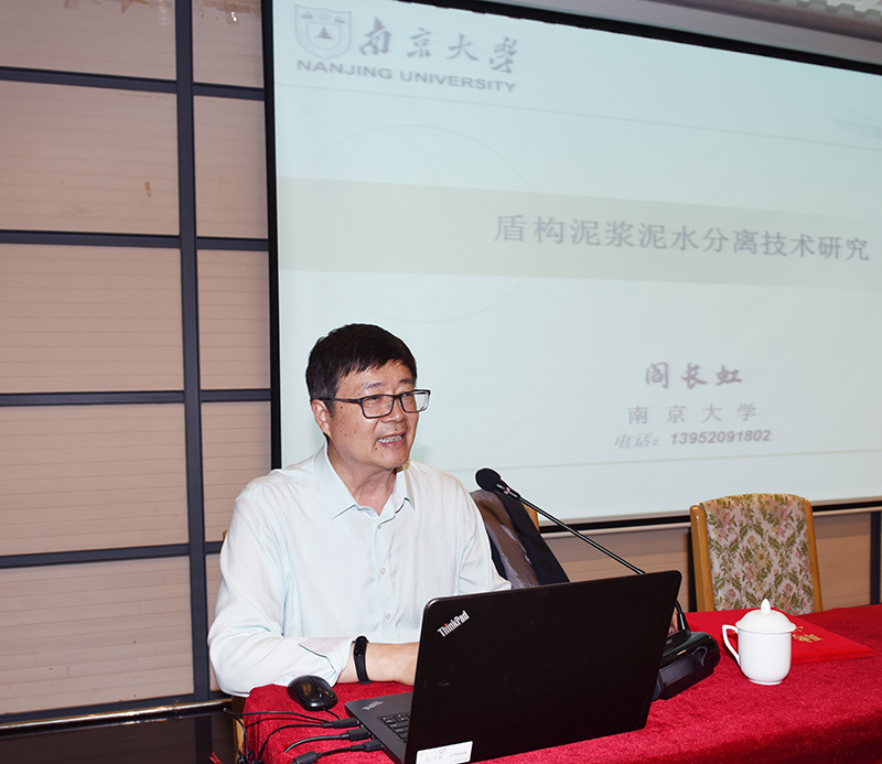 聘任仪式后,阎长虹作了题为《城市交通隧道盾构泥浆处置试验研究》的学术报告,他从“盾构泥浆性状、盾构泥浆脱水试验研究、泥浆电渗脱水数值模拟研究、施工现场试验、盾构泥浆资源化利用”等方面出发,全面讲述了盾构泥浆电渗脱水影响因素、电渗脱水理论、室内外试验等方面的最新研究成果。