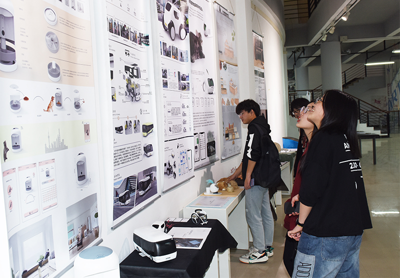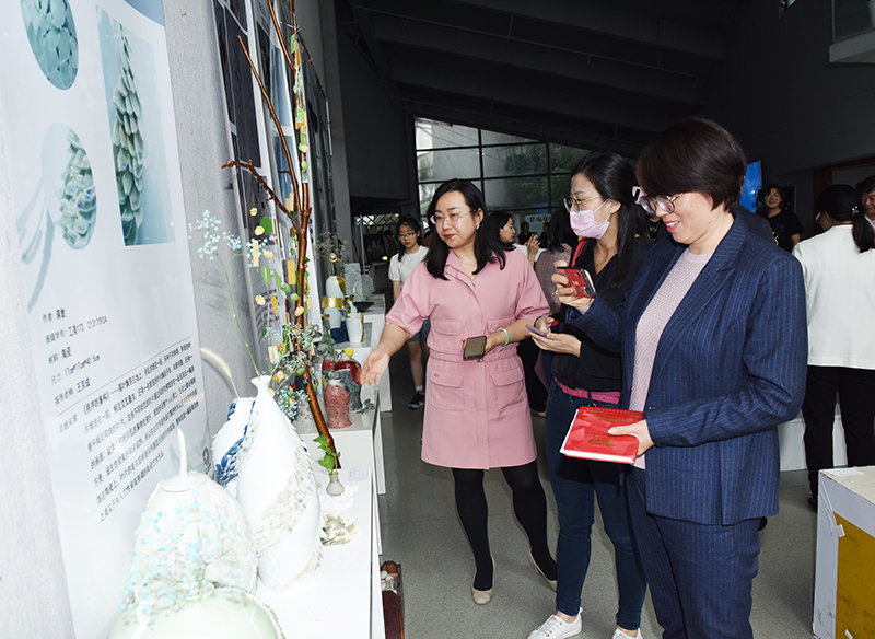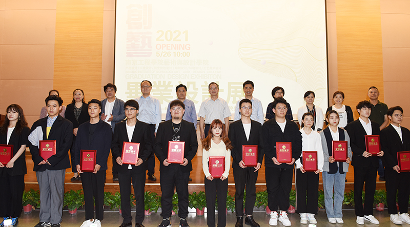 艺术与设计学院张玉春院长介绍说,近年来艺术与设计学院在硕士点学科建设和国家一流专业建设等方面取得了历史性突破,为学校建设特色鲜明的应用型工程大学做出了应有贡献。本次展览中,来自产品设计、工业设计、视觉传达设计、环境设计、动画、工艺美术六个专业269位学生的设计作品呈现出对自身与世界的认识与思索,他们在艺术形式、艺术语言和艺术风格上不懈探索,表达出独特的创作体悟与设计效果。这些作品不仅体现了他们学识与能力的积累沉淀,也蕴涵着他们执着的努力与无尽的创意。本次展览既是学院教学改革与探索的一段总结,更是在中国共产党建党百年之际献上的一份厚礼!