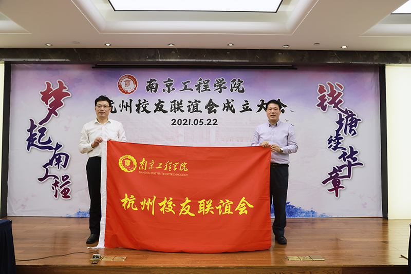 张仰飞副院长和校友联谊会顾问陈建中校友共同为杭州校友联谊会成立揭牌,并向杭州校友会会长授予联谊会会旗。