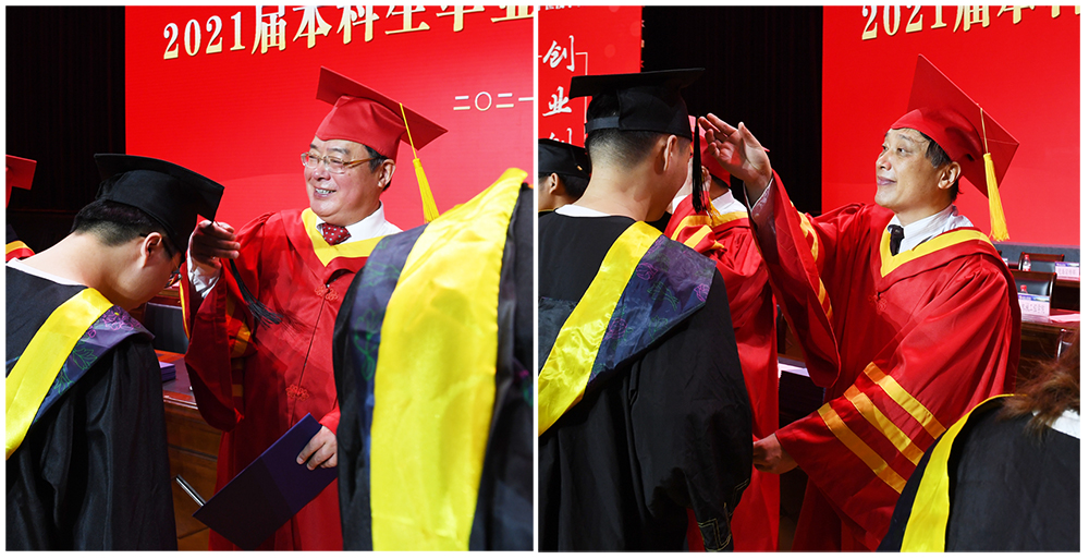 毕业典礼上,校领导和各二级学院院长连续近三个小时,为所有参加毕业典礼的学子拨流苏并颁授学位证书,祝贺他们学有所成,鼓励他们立大志,明大德,成大才,当大任。为了给毕业生们留下一份珍贵和独特的回忆,学校为每一位毕业生记录学位授予的瞬间,毕业生同学可以随时通过网盘下载专属于自己的庄严而感动的时刻。