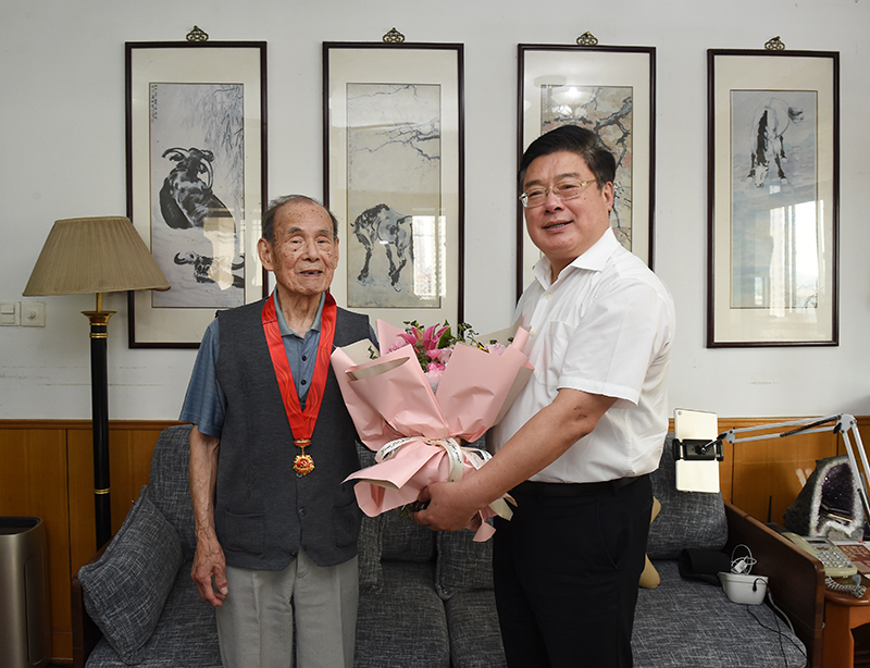 在杨伟、徐肯堂、王云定三位老同志家中,校领导陪伴老同志们,追忆了我党革命时期的峥嵘岁月与新中国建设时期的光辉历程。老同志们戴上熠熠生辉的纪念章,感到无比光荣、格外激动,他们表示:全国人民今天的美好生活,是党中央领导一代代共产党人和中华儿女浴血奋战、顽强拼搏,解放思想,开拓创新取得的。在党的百年诞辰来临之际,党中央为老同志颁发纪念章,让老同志们的荣誉感、归属感和使命感极大增强。老同志们深切感受了以习近平同志为核心的党中央对我们老同志的关怀温暖,衷心祝愿伟大的中国共产党永葆青春活力,老同志们将牢记入党誓言,永远听党话,跟党走,为党和国家事业贡献出毕生力量。