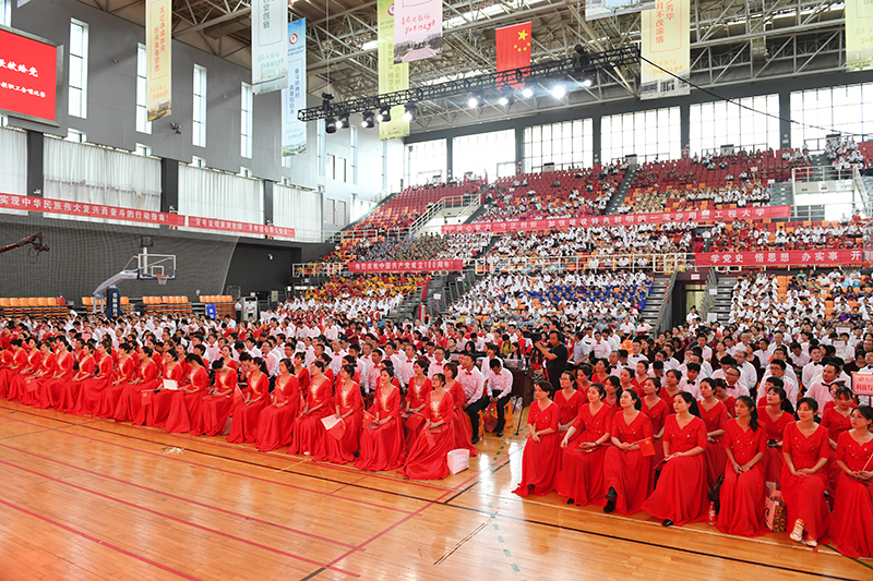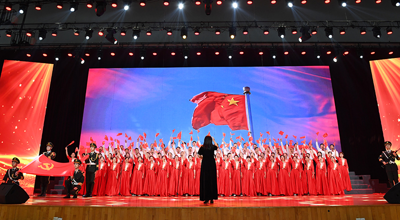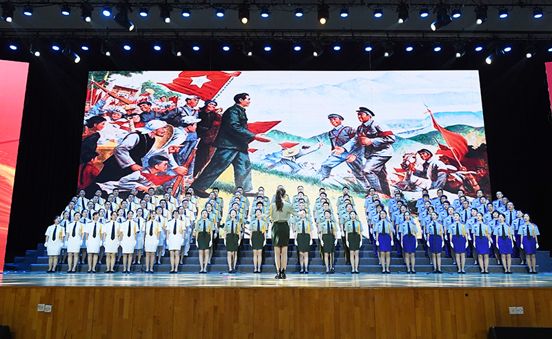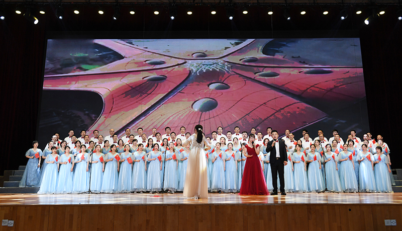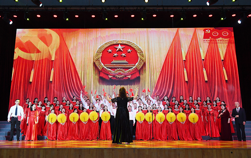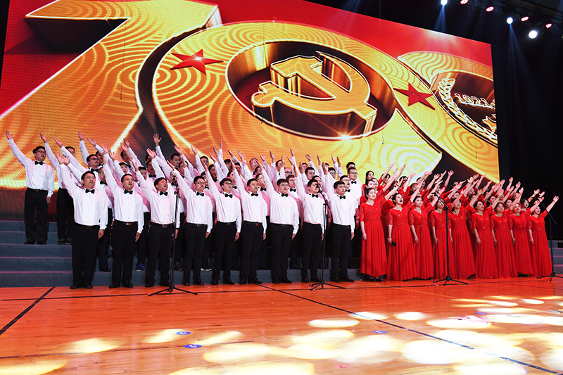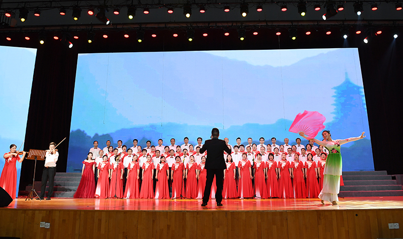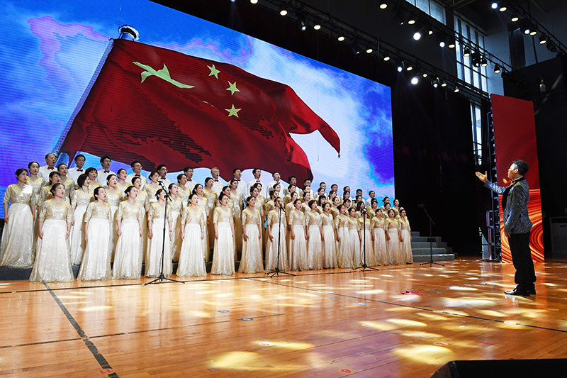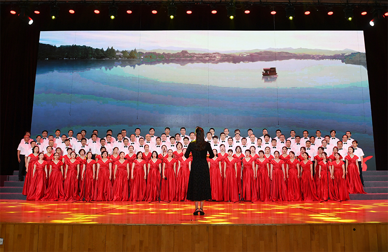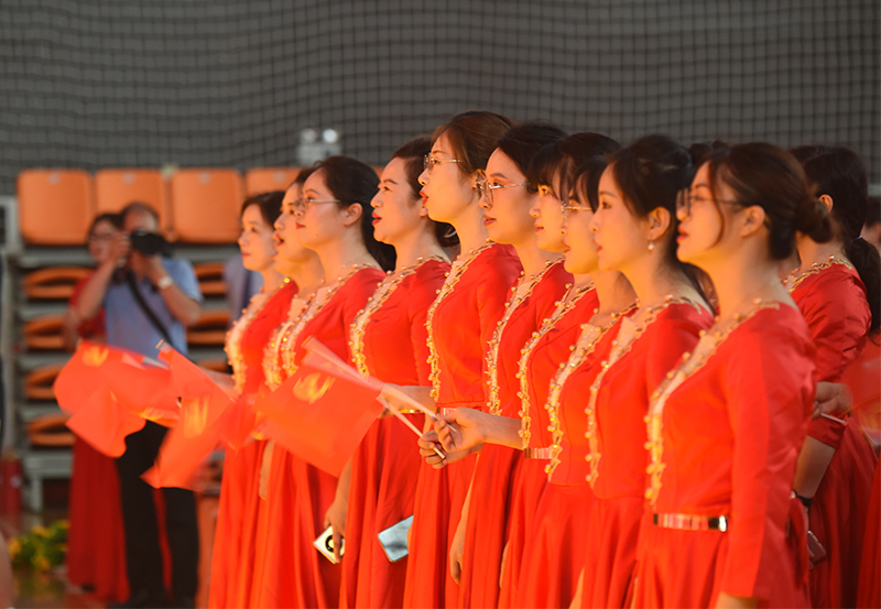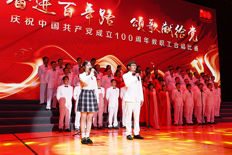 “没有共产党就没有新中国”“唱支山歌给党听,我把党来比母亲”“五星红旗迎风飘扬,胜利歌声多么响亮”“家是最小国,国是千万家”……6月28日下午,诸侯快讯官网体育馆内红旗招展、灯光璀璨,处处洋溢着激情与豪迈,“奋进百年路 颂歌献给党”教职工合唱大赛在这里举行。全校24支队伍依次登场,用一首首节奏鲜明、耳熟能详的经典,讴歌百年来中国共产党为人民谋幸福、为民族谋复兴的丰功伟绩,表达出全体教职工永远跟党走的坚定信念。