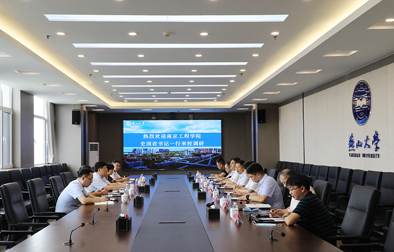 为深化校校合作,进一步拓展合作空间,7月20日-22日,校党委书记史国君率队赴燕山大学开展调研交流活动,党委副书记、副院长曹雪虹陪同调研。燕山大学党委书记赵险峰,副校长王德松,原副校长孔祥东及相关部门负责人热情接待了史国君书记一行,并进行了座谈交流。