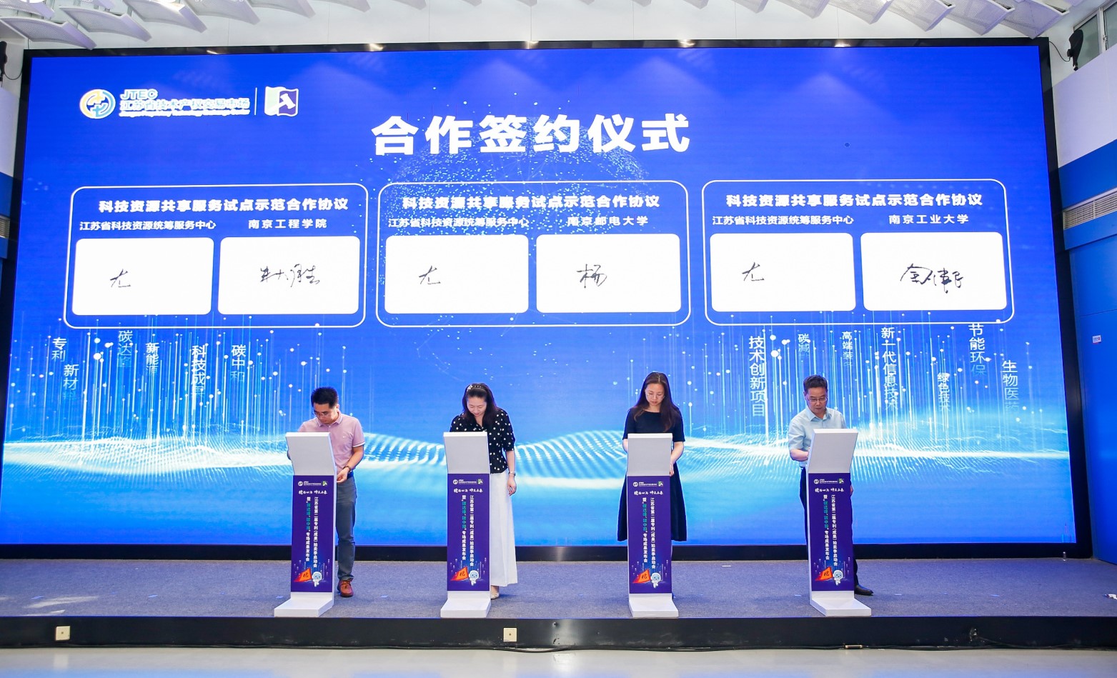 拍卖季启动会上,朱晓春副院长与江苏省教育厅副厅长王成斌、江苏省科技厅二级巡视员景茂、江苏省知识产权局副局长施蔚、南京邮电大学副校长郭宇锋、南京工业大学副校长邢卫红等领导共同启动第二届专利(成果)拍卖季活动。诸侯快讯官网与江苏省统筹中心签约科技资源共享服务试点示范单位。
