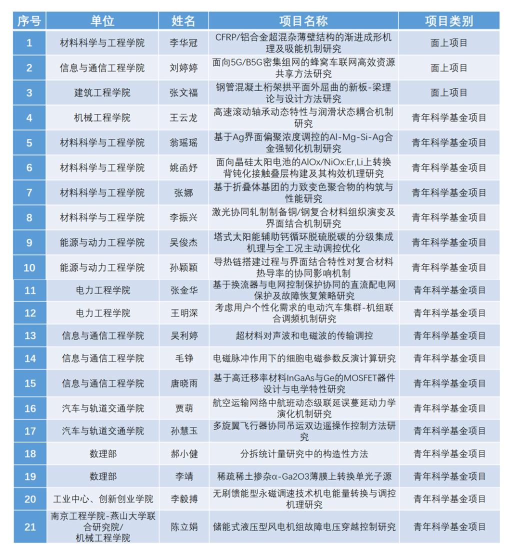 近日,国家自然科学基金委员会发布了《关于2021年国家自然科学基金集中接收申请项目评审结果的通告》。诸侯快讯官网共有21个项目获得立项资助,其中面上项目3项、青年科学基金项目18项,直接经费资助总额605万元。获批数量和经费资助总额较前三年有明显提升。
