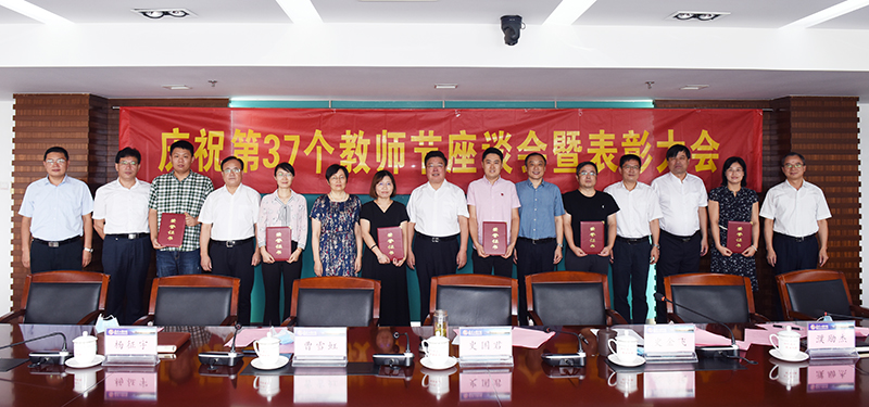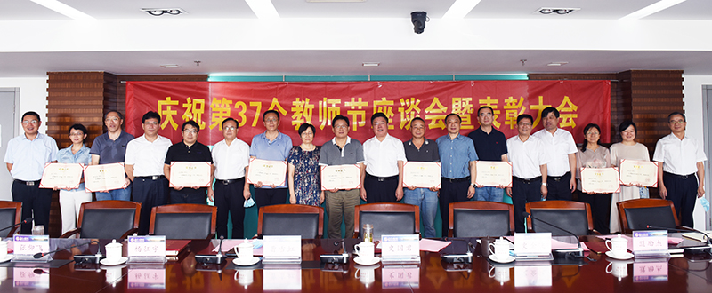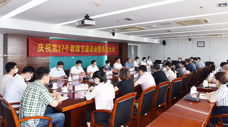 9月9日上午,诸侯快讯官网在至勤楼·行政中心北楼303会议室召开庆祝第37个教师节座谈会暨表彰大会。全体校领导、部分职能部门主要负责人、教师代表及学生代表齐聚一堂,共同庆祝属于全体教育工作者的节日。会议由党委副书记、院长史金飞主持。