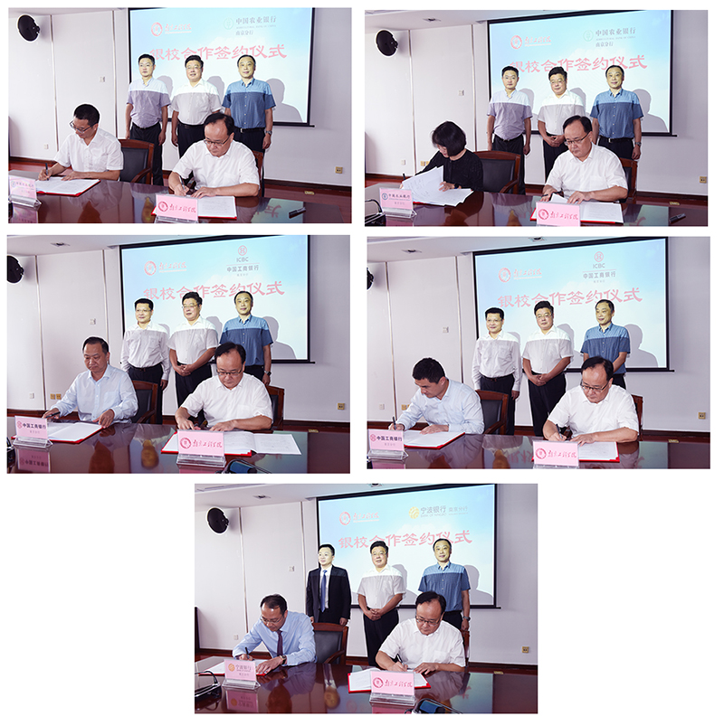 9月9日下午,诸侯快讯官网与中国农业银行南京分行、中国工商银行南京分行、宁波银行南京分行合作签约仪式在至勤楼·行政中心北303会议室举行,开启银校合作新模式,谱写发展共赢新篇章。校党委书记史国君,党委副书记、院长史金飞,党委常委、副院长杨征宇;中国农业银行江苏省分行党委委员、副行长、南京分行党委书记、行长吴忠辉,中国工商银行江苏省分行党委委员、副行长张海滨,宁波银行总行党委委员、南京分行行长徐震宇出席签约仪式。签约仪式由史金飞院长主持。