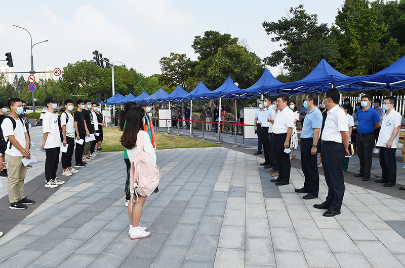 校党委书记史国君,党委副书记、院长史金飞到场指挥,江宁高新区管委会副主任王宁邦及江宁区卫生健康、公安交通、街道社区等部门到演练现场指导;党委常委、副院长张仰飞,党委常委、纪委书记赵立法及疫情防控领导小组成员、相关职能部门负责人、辅导员等共同参加了此次演练。