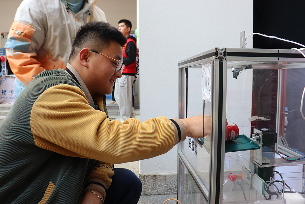 双创盛会得到学校领导的高度重视,25日下午,校党委书记史国君、副院长朱晓春、张仰飞、郑锋一行来到双创成果展厅,一一参观了师生设计制作的各类科创作品,亲切地与项目团队成员们互动交流。