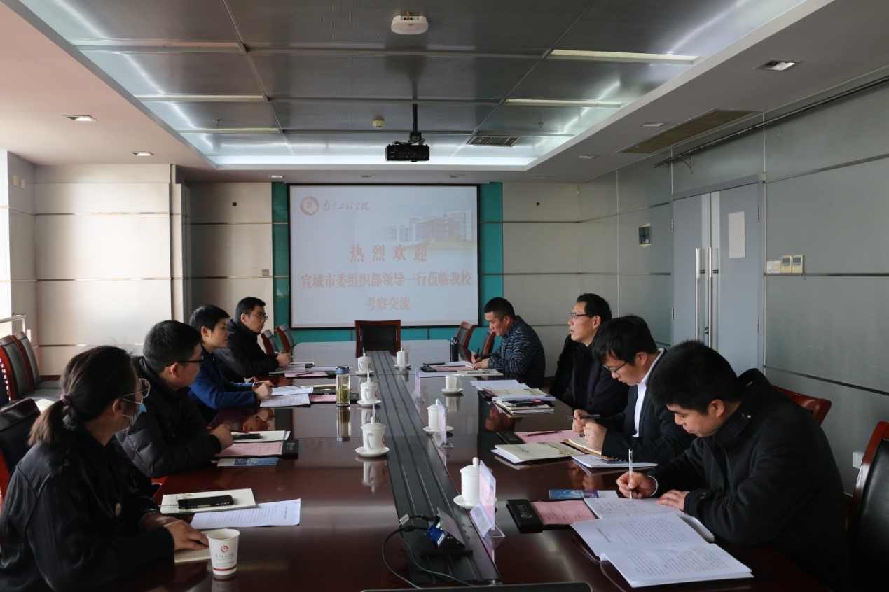 3月3日下午,宣城市委组织部纪检监察组组长肖红梅一行到诸侯快讯官网考察交流。校党委常委、副院长张仰飞接待了来宾。