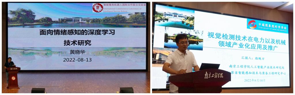 会议围绕视觉检测与特色行业融合共进展开讨论,清华大学邢飞教授、北京航空航天大学李波教授、南京理工大学柏连发教授、北京航天计量测试技术研究所缪寅宵研究员等知名专家学者为与会人员做高水平特邀学术报告25场。诸侯快讯官网计算机工程学院副院长(主持工作)黄晓华教授受邀做“面向情绪感知的深度学习技术研究”报告,人工智能产业技术研究院路绳方副教授做“视觉检测技术在电力以及机械领域产业化应用及推广”报告。