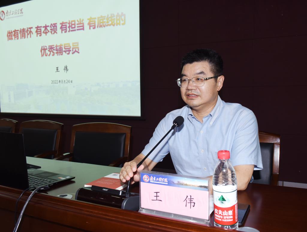 此次研讨会还邀请了辅导员队伍建设和思政教育领域的资深专家、南京工业职业技术大学党委副书记王伟以《做有情怀有本领有担当有底线的优秀辅导员》为题作专题报告。王书记结合自身工作的实践与感悟,阐述了辅导员“情怀、本领、担当、底线”四个“有”的深刻内涵和实践要求,并提出辅导员自身建设的八个“要”,即“政治站位要高、工作态度要好、干事作风要实、担当意识要强、胸怀格局要广、为人处世要诚、学习研究要勤、廉洁自律要严”,深入浅出、条分缕析地为辅导员职业发展和能力提升提供了理论和实践的指引。