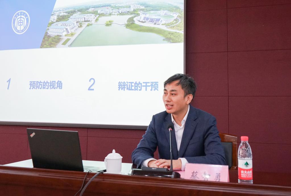 会上,蔡智勇主任作专题讲座,他从预防的视角和辩证的干预两方面对大学生心理健康教育工作进行解读,并结合学生实际案例,提出帮助学生改善睡眠质量、提升生命意义感的重要策略。