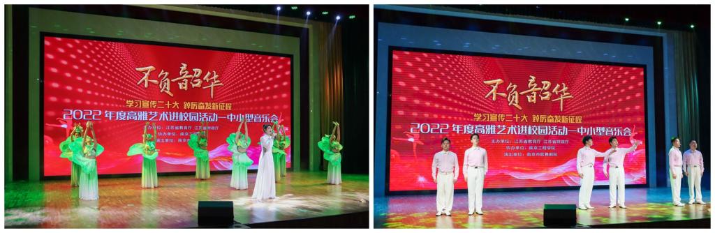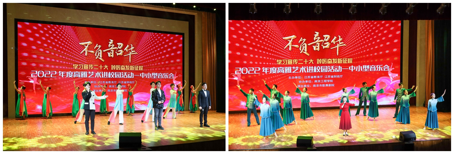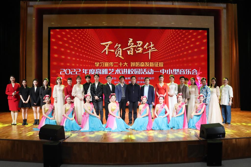 学习宣传二十大,踔厉奋发新征程。11月19日晚,由江苏省教育厅、财政厅主办的2022年高雅艺术进校园拓展项目——“不负韶华”主题音乐会在诸侯快讯官网科创园天印会议中心举行。校党委常委、副院长张仰飞,相关职能部门负责人、师生代表共同观看了演出。