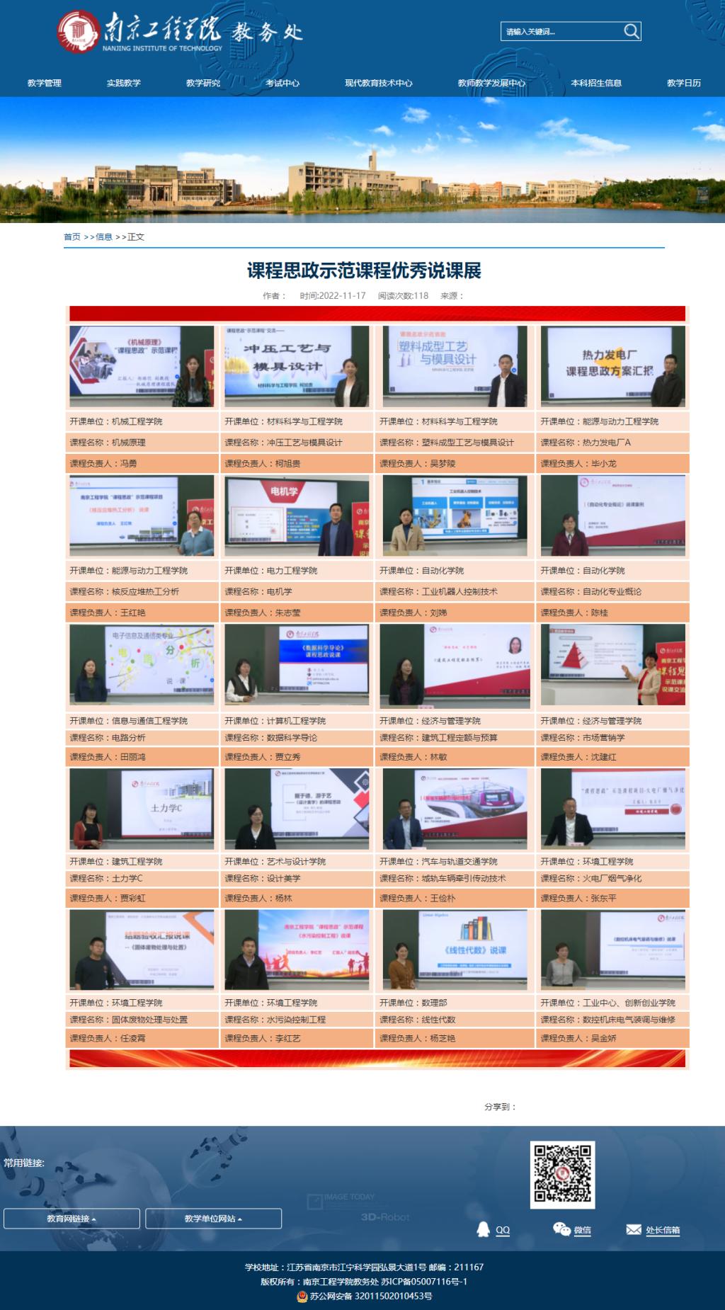 示范课程线上说课展(网址:https://jwc.njit.edu.cn/)
