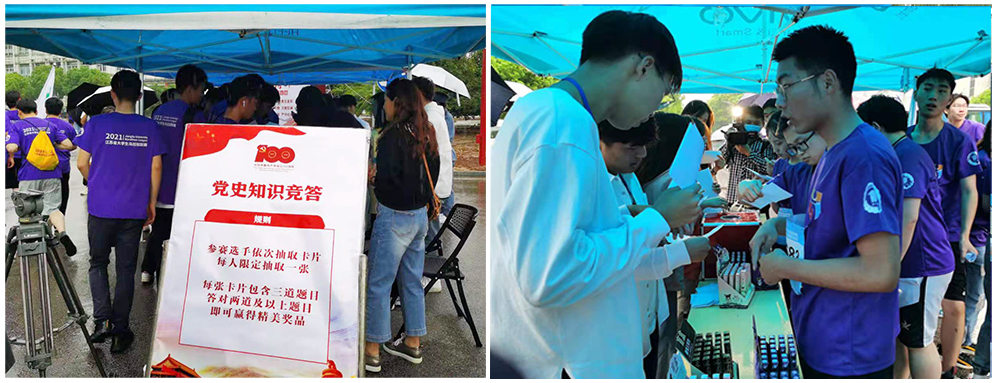 为增强党史学习教育的实效性,“长征”终点站设置了党史知识问答区,参与人员每答对题目即可兑换活动纪念品,不仅在寓教于乐中让党史知识入脑入心,同时给活动增添了浓厚的趣味。“去年因为疫情没有跑起来,今年终于等到了。感谢活动方精心的准备和贴心的服务。”大四毕业生、计算机工程学院赵艳宇同学答对了所有的题目,并开心地表示马拉松激发了自己无限的可能:“走上社会后,我们也要循着先辈的足迹,接续奋斗,努力追梦。”