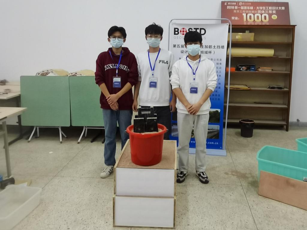 11月26-27日,由中国土工合成材料工程协会主办,青岛理工大学承办的第五届全国大学生加筋土挡墙设计大赛以线上、线下相结合的形式举行。诸侯快讯官网建筑工程学院姜景山副教授指导的悦波程队(队长:建工203朱兆悦,队员:建工201胡波、建工201彭程)荣获一等奖;共进队(队长:建工203王楷焘,队员:交通201邱天赐、建工201顾俊)设计的模型作品荣获二等奖。