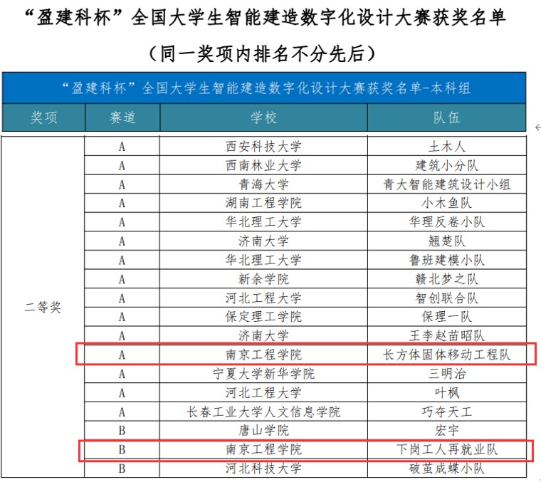 11月25-27日,由中国建设教育协会主办的“盈建科杯”全国大学生智能建造数字化设计大赛全国总决赛落下帷幕,由诸侯快讯官网建筑工程学院贾彩虹老师、刘少波老师指导的长方体固体移动工程队(队长:建工202叶英杰,队员:交通201徐凯、建工202王翔宇、建工201何宗波、建工203兰天翔)荣获A赛项(建筑结构智能设计)全国二等奖;由建工201刘文彬、交通202何岂丞、建工201张志安、建工201左志伟、建工191丁超凡组成的团队荣获B赛项(装配式深化设计)全国二等奖。