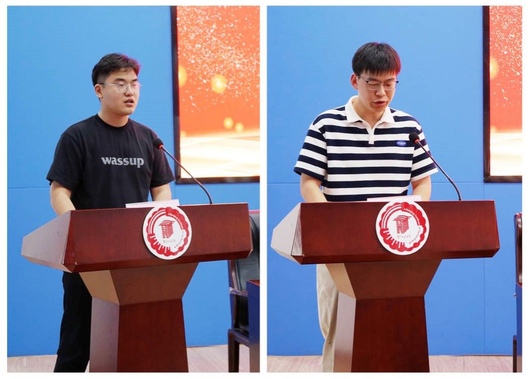 2023届本科生年级校友会秘书长肖汉、2023届研究生年级校友会会长张苏南分别作交流发言,他们代表2023届全体毕业生向母校致以最诚挚的祝福,向所有辛勤教导、悉心培育莘莘学子的老师们致以最崇高的敬意。他们纷纷表示将在学校校友总会的指导和帮助下,在理事会全体成员的鼎力支持和共同努力下,情牵母校、心系校友,努力架起校友与母校的“连心桥”,当好校友活动的“组织员”和校友文化的“宣传员”,做好校友的“暖心事”,共绘发展的“同心圆”,助力校友和母校的共同发展。